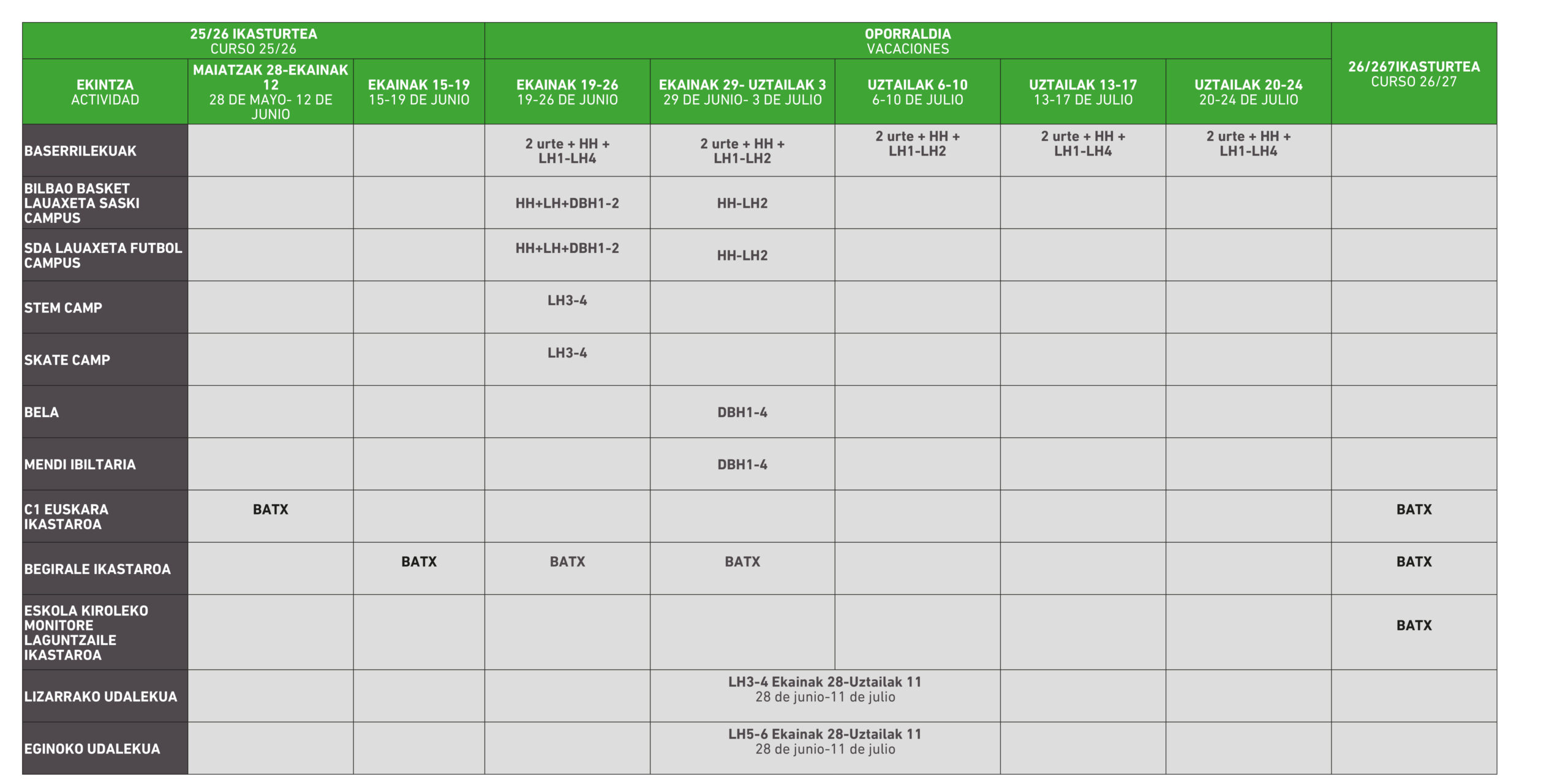 HHn seme-alabak dituzuenoi gogorarazten dizuegu egun berdinetarako haurtzaindegi zerbitzu bat ere baduzuela eskuragarri eta izena emateko epea abenduaren 10era arte luzatuko dela.